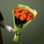 На фото букет из 7 оранжевых роз. В составе: роза 7 шт, дизайнерская упаковка 2 шт, атласная лента 1 шт, . Все цветы свежие и ароматные, букет красиво оформлен и отлично подходит для подарка. Доступна доставка цветов или самовывоз.
